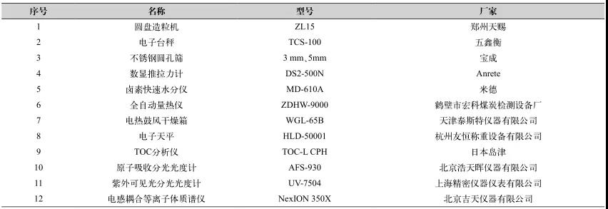 廢鹽的熱解焚燒試驗采用改進后的燒結杯作為模擬試驗設備,試驗過程中使用的其它主要設備及儀器如表3所示。